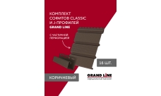 Комплект Софит Grand Line Classic частично перфорированный 1,5м коричневый (16шт) и Профиль J Grand Line Standart 1,5м коричневый (18шт)