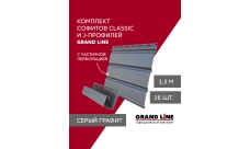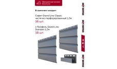 Комплект Софит Grand Line Classic частично перфорированный 1,5м серый графит (16шт) и Профиль J Grand Line Standart 1,5м серый графит (18шт)